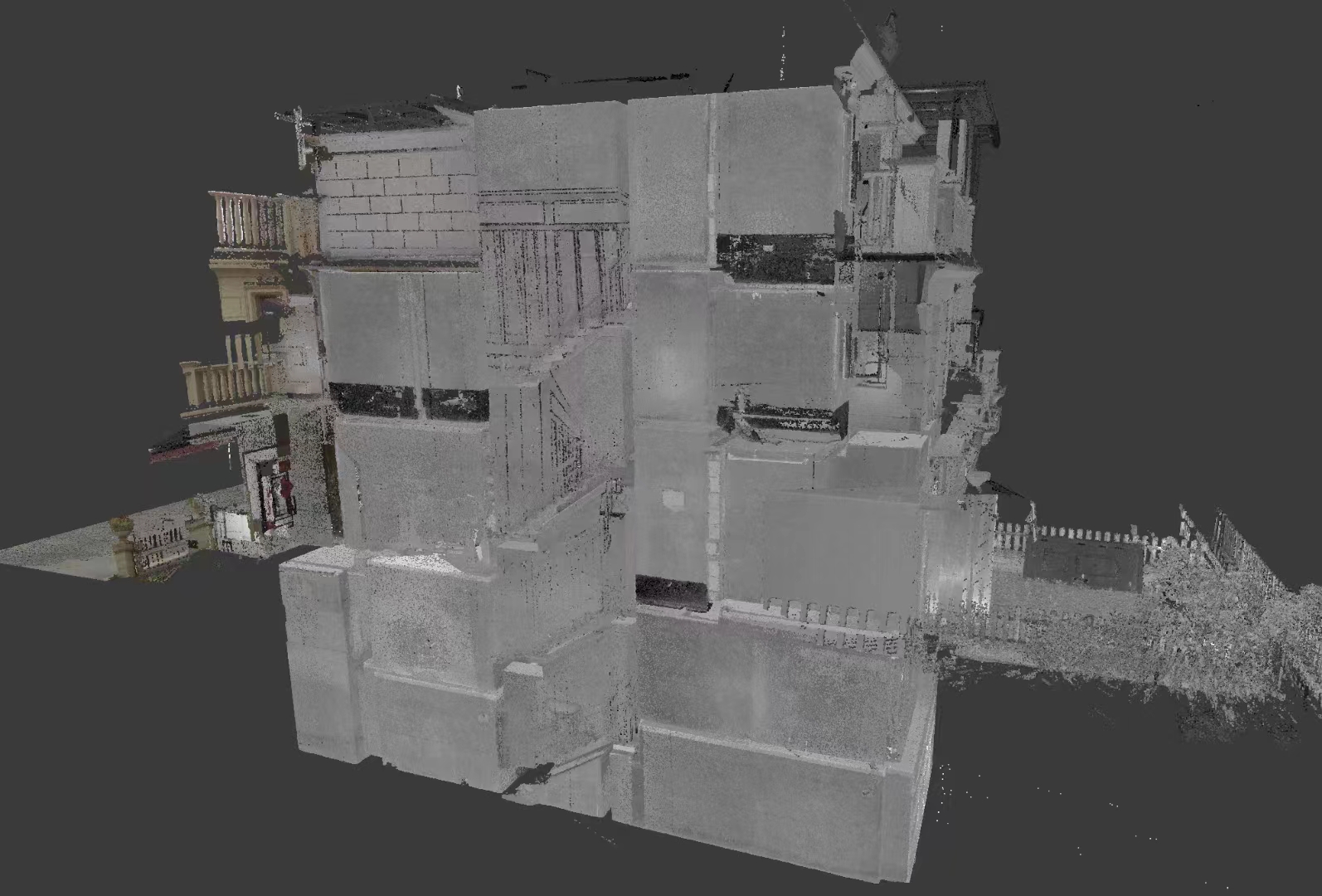 通过在不同扫描点多次获取的数据,可以通过软件进行拼接,很方便地拼接出整个建筑物完整的模型