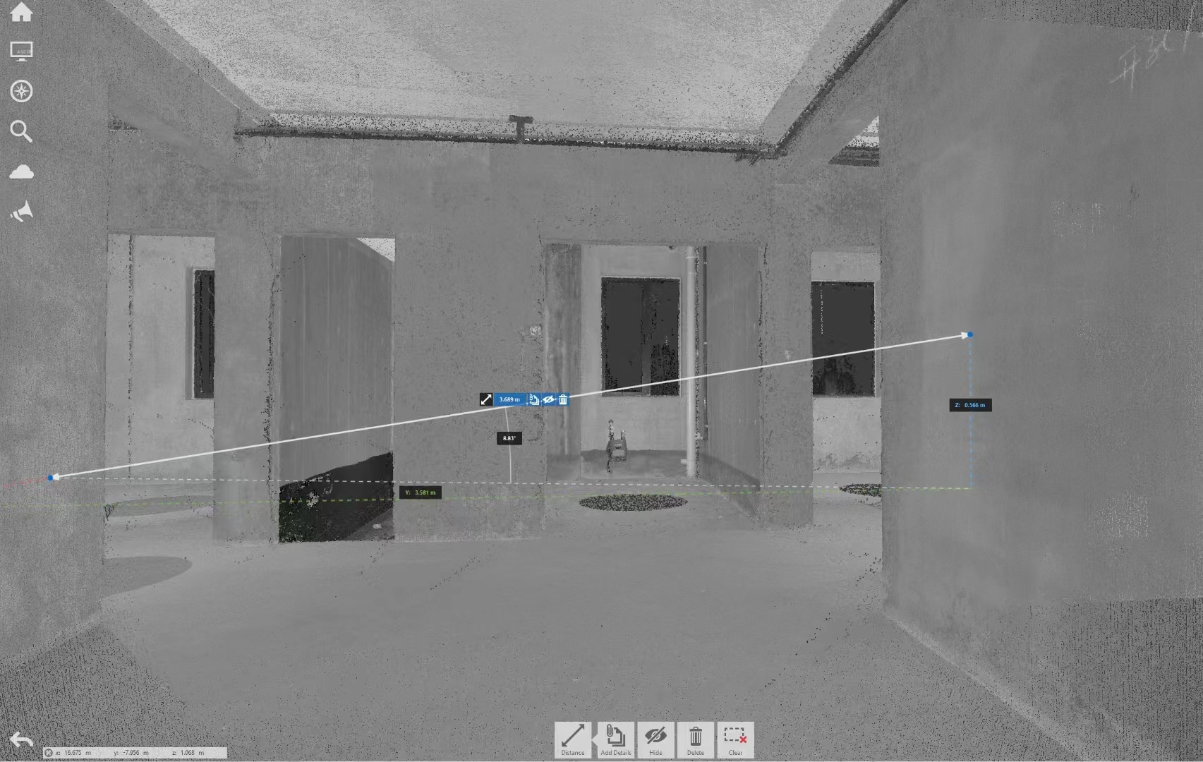 所获取的三维点云模型,包含了各个房间、以及梁、柱、墙、窗户、门等细节的三维空间数据