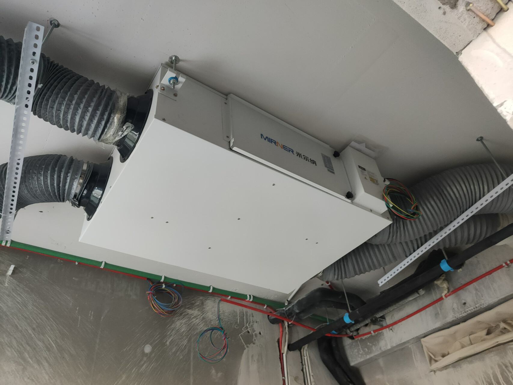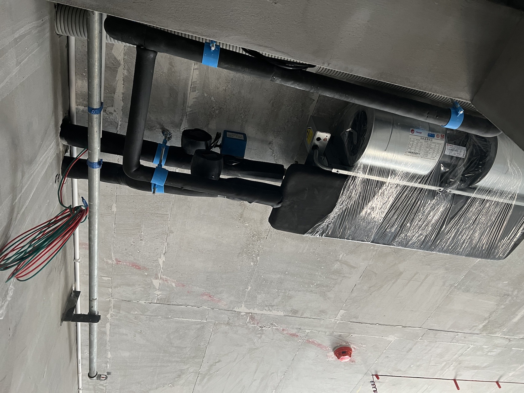 - 本项目采用一台中金16KW空气源热泵两联供主机,室内空调也就是末端风机盘管全部采用美国特灵的产品,温控器均采用中金智能物联网温控器,能接入米尔纳全屋智能系统,实现语音控制、远程控制、联动控制、自动控制、场景控制等。