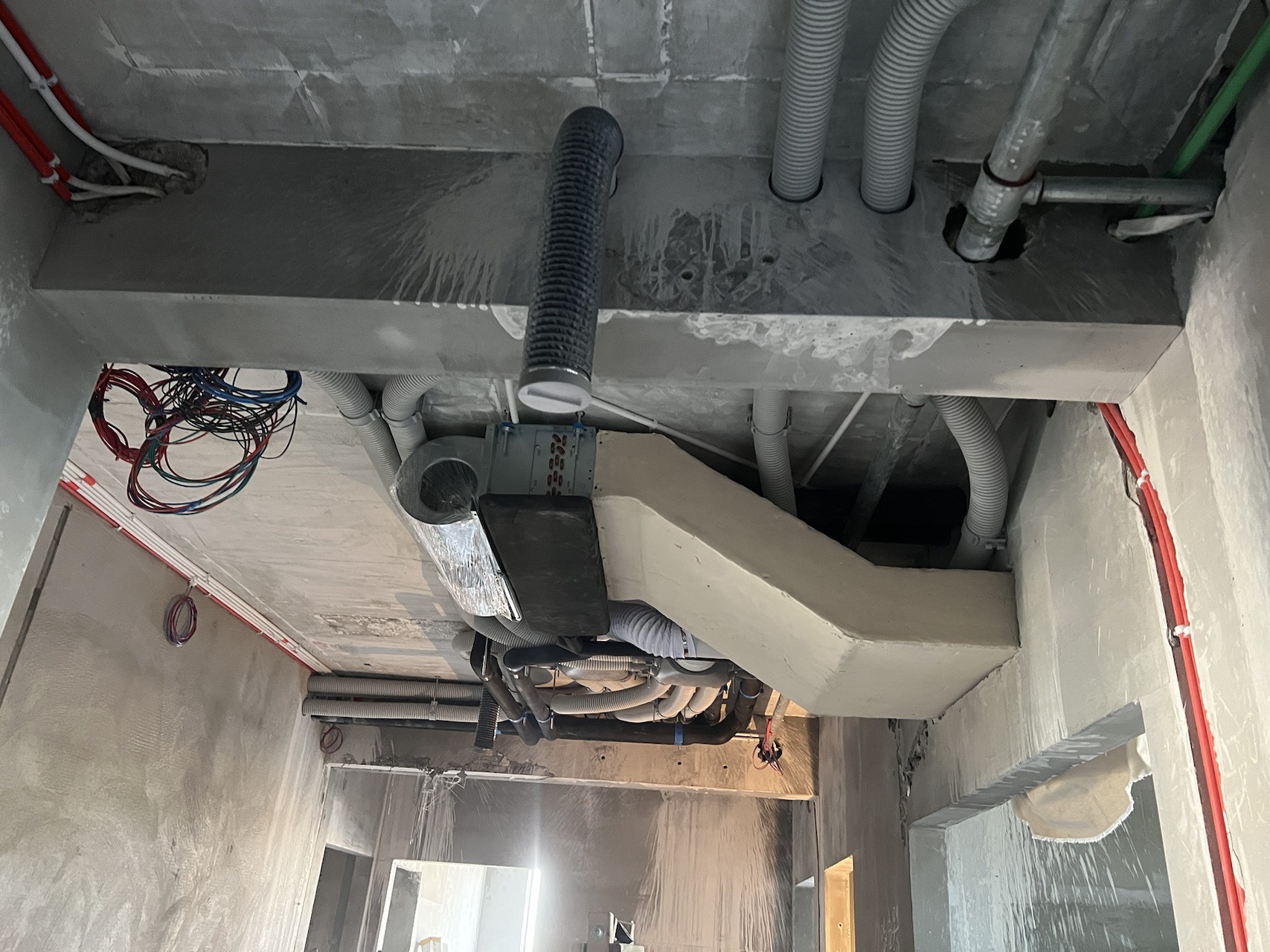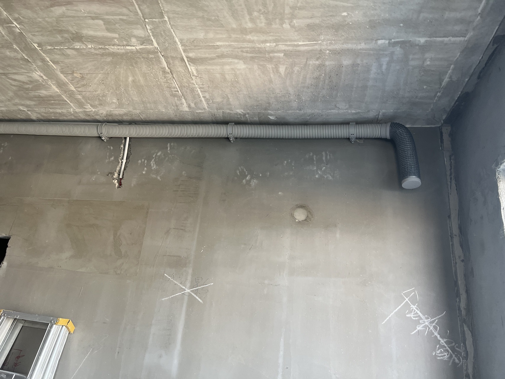 - 业主想要在厨房安装一台空调,但是不希望油烟被吸入空调,因此空调的回风设计在公共走道,通过风道送风到厨房。