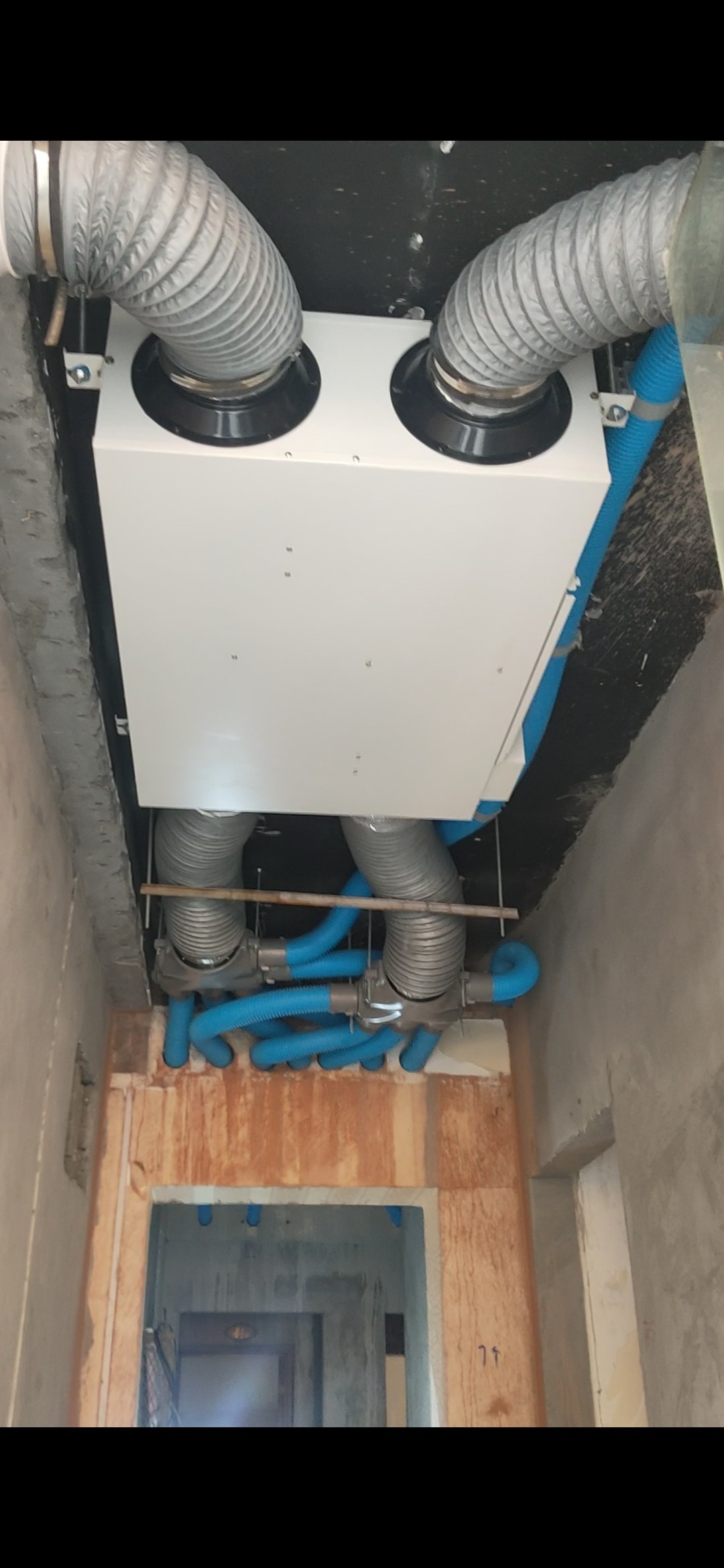 - 业主装修此房屋是为了出租用,一套154平的房子分成了5个套间。由于位于一楼,有几个卧室旁边经常停有旁边小区的汽车,汽车启动的时候会有噪音和尾气进入室内,非常影响居住体验。由于业主定位高端租户,因此,为了解决这个问题,在优筑订购了一套米尔纳新风系统,从而可以让租户长期关闭窗户,通过新风系统进行室内换气,同时全热交换型新风系统又可以大大减小室内的冷量或热量流失。