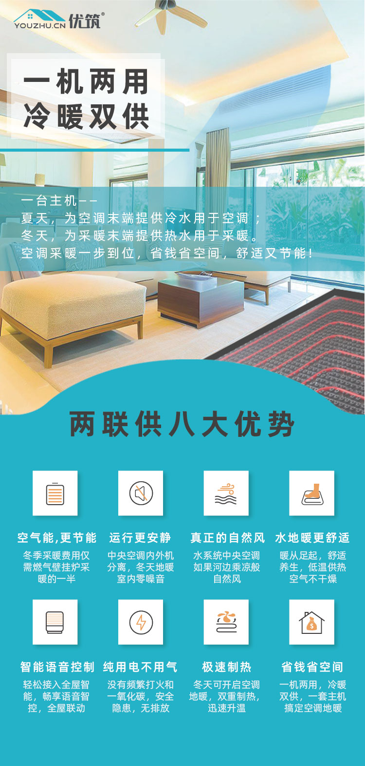 优筑五恒辐射空调系统-【顶/地/墙辐射-新风除湿-风盘】-恒温 恒湿 恒氧 恒洁 恒静